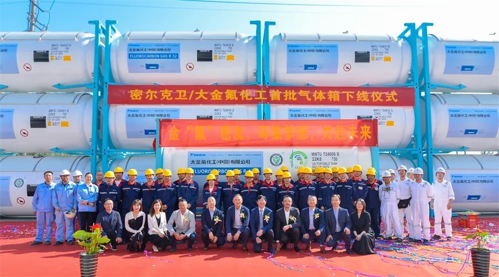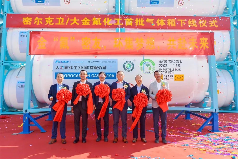 金秋时节,,,,,,,丹桂飘香,,,,,,,在11月第一个天高气爽的日子里,,,,,,,尊龙凯时迎来了一批尊贵的客人——中国化工仓储、物流的领军企业密尔克卫供应链效劳有限公司董事长陈银河、大金氟化工(中国)有限公司总司理仲村清人等一行,,,,,,,他们与尊龙凯时季国祥总司理配合见证了密尔克卫和大金氟化工首批气体罐下线的激动时刻。。。。。